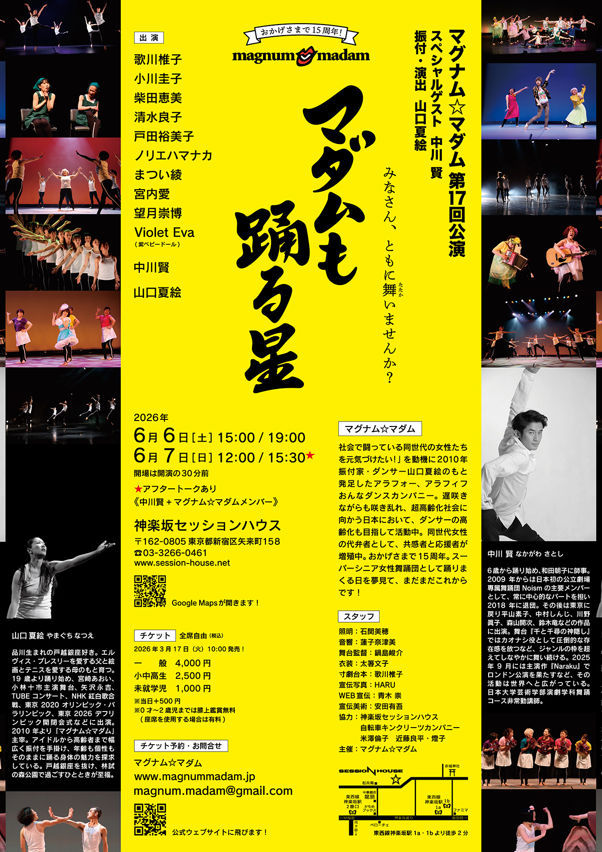 石黒節子、片岡康子率いる、お茶の水女子大学舞踊教育コース卒業。ダンス漬けの学生生活の最中、山崎広太や近藤良平に影響を受け、山口夏絵と出会う。2010年立ち上げよりマグナム☆マダムに参加。心にモチベーション、手には好物の牛肉&ビール、ダンスが教えてくれることは資本主義社会を生き抜く力になると実感しながら、自身のキャリア形成道を爆進中。書類作成業・目ヂカラ担当。
